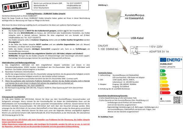 - Dubbe Lämpche mit Edelstahlfuß und Kabel